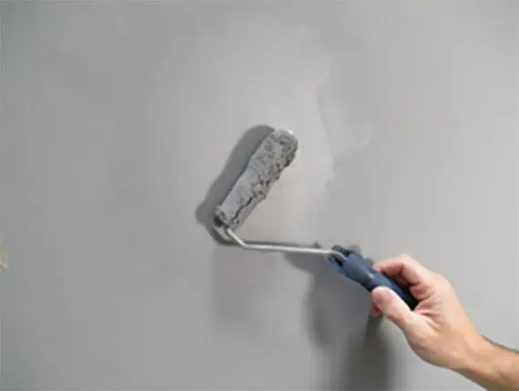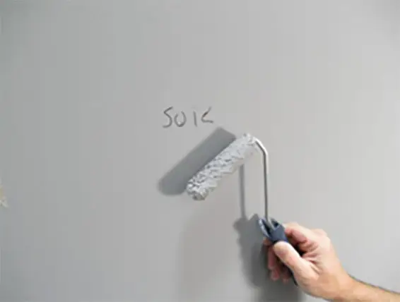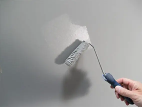 Equipment: Ideally touch-up should be conducted with the same type of applicator as the original mineral paint application. Application equipment can create a unique “texture” which should be reproduced as much as possible. Here a small 3/8” nap roller is used to touch-up a wall where Optil was originally applied by a 3/8” nap roller.